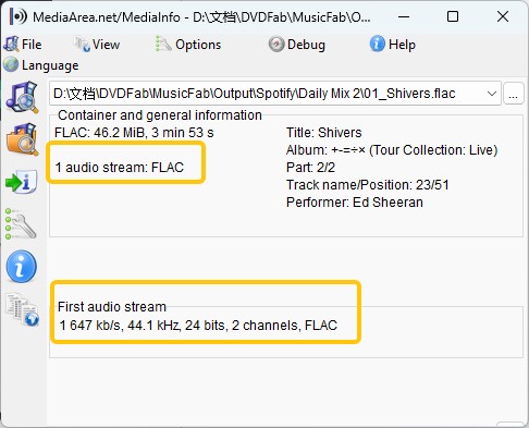 Here is the metadata of one of the downloaded FLAC files.