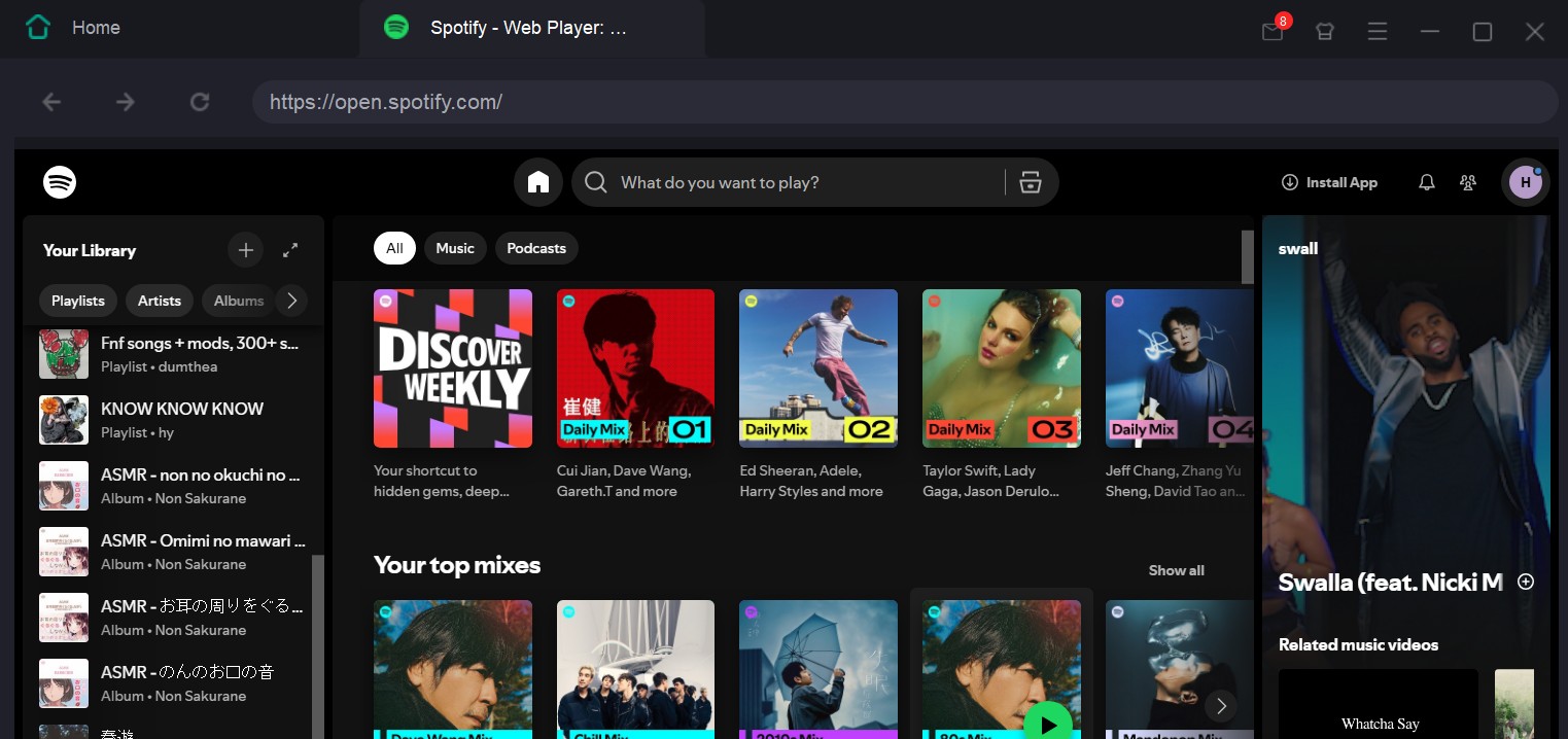 You’ll see a built-in browser window that looks exactly like the Spotify web player. Log in to your Spotify Free or Premium account, and browse to any playlist or album you want to convert.